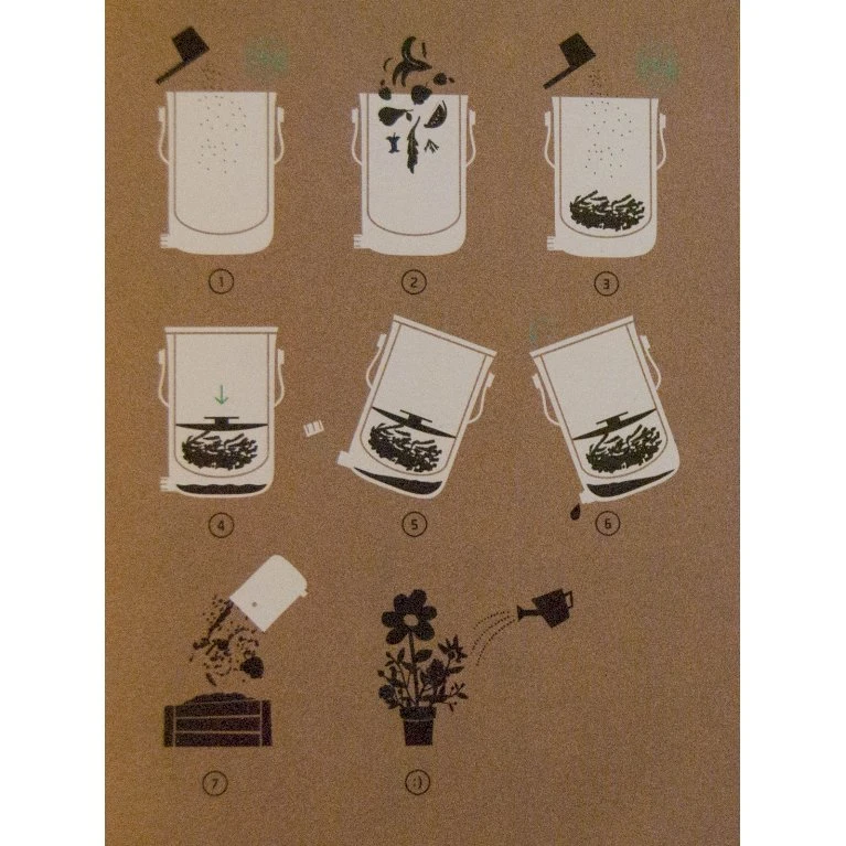 9. Hvis du ikke har mulighed for at grave det fermenterede madaffald (bokashi) ned i egen have, så lav evt. aftaler med nogen som har denne mulighed og gerne vil have din kompost eller smid det ud til organisk affald i et lukket system, hvis du har del i en affaldssorteringsordning.