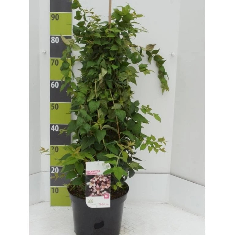 Rig blomstring i juni måned. Ældre buske kan stå ganske dækket af dunede rosa, klokkeformede blomster. Vægten af blomsterne tynger de unge grene ned i yndefulde buer.
