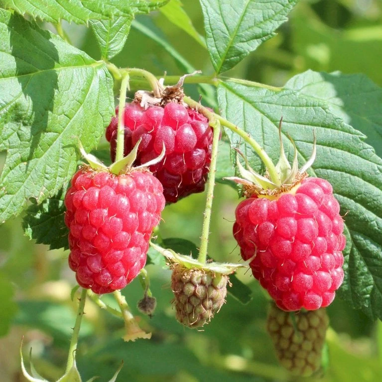 Hindbærbusken er opret og middel voksende, med blanke, friskgrønne, trelappede blade.