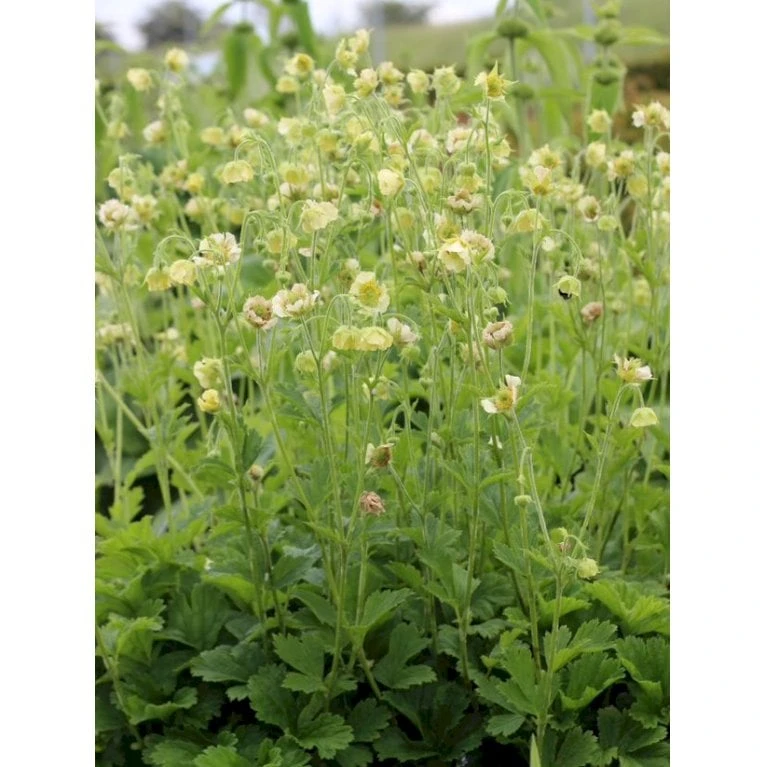 maj-juli. Små nikkende, klokkeformede blomster i toner af lys limegrøn og creme. Senere fine dunede frøstande.