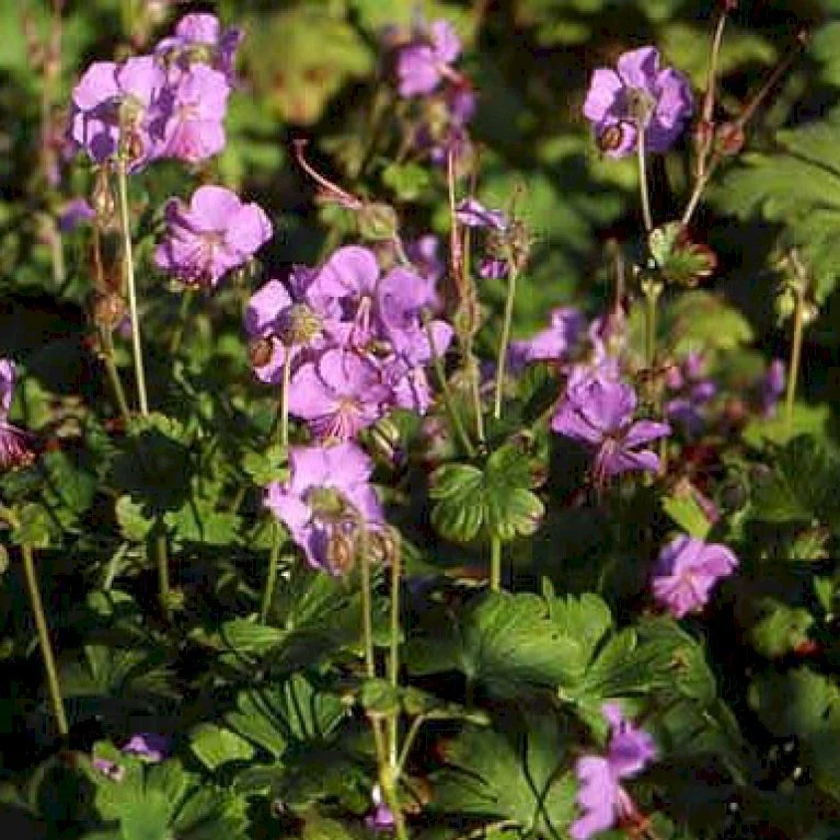 Juni-juli, mørkrosa knop, rosa blomst, senere dekorative frøstande.