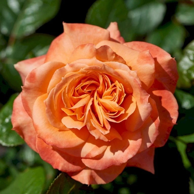 Orange til abrikosfarvet. Stor, velformet fyldt blomst med kraftig og dejlig, parfumeret duft. 25-40 kronblade. Op til 15 cm i diameter.