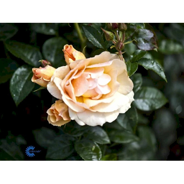 Ravfarvet til abrikos i flere nuancer. Ganske stor halvfyldt blomst med let til middelstærk og behagelig duft. 10-25 kronblade. 7-9 cm i diameter.