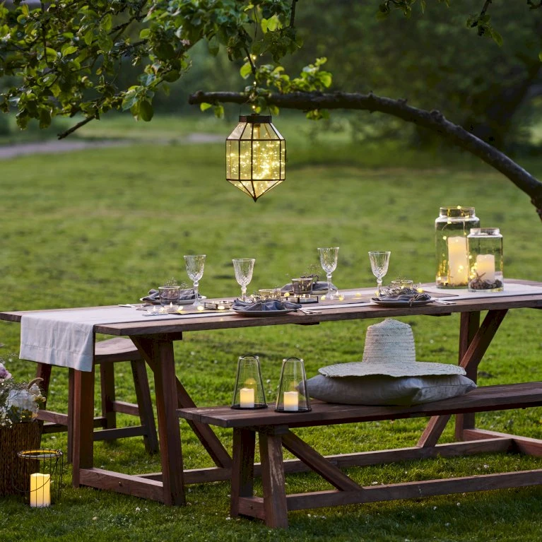Knirke Stik er en meget dekorativ lyskæde, og er velegnet til at skabe stemningsbelysning i haven. Lyskæden er velegnet til alt fra vasen indendørs til bålfadet udendørs.