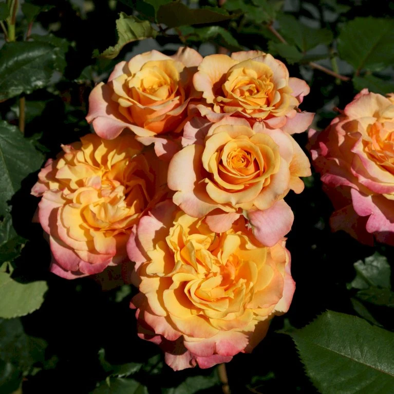 Busket og opret vækstform, roserne sidder i grupper på typisk 3 – 7 blomster.