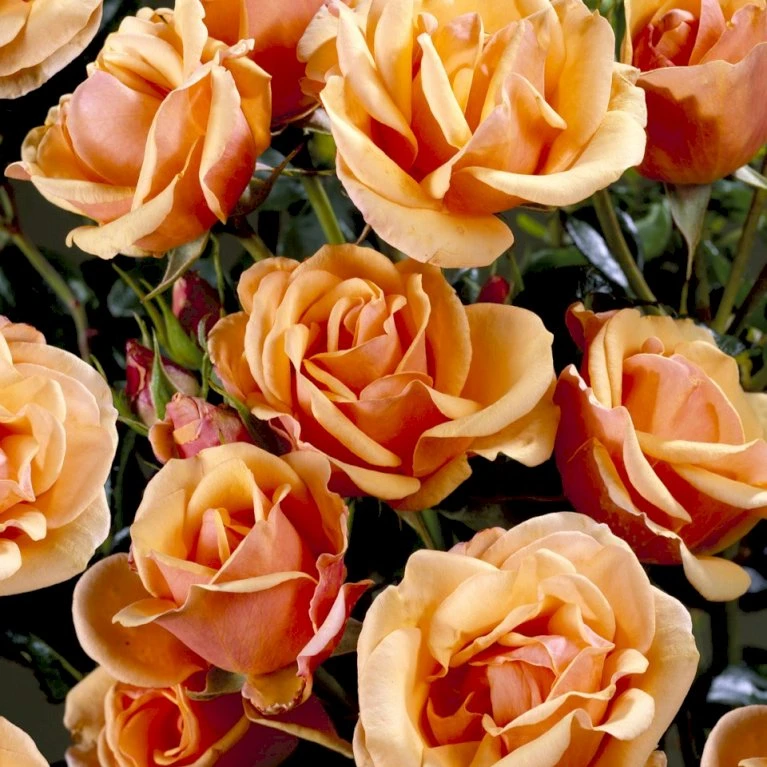 Orange med kobber og rosa toner. Middelstor fyldt blomst med dejlig vildroseduft. Mere end 25 kronblade. 7-9 cm i diameter.