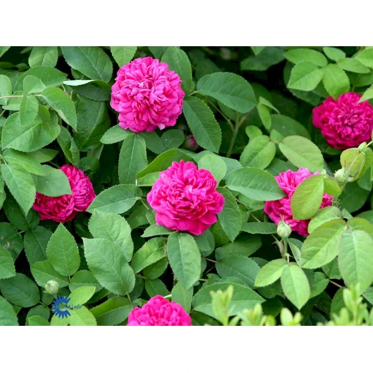 Mørkt karminrød. Kugleformede knopper åbnes til stærkt fyldte blomster med stærk og dejlig duft. Mere end 40 kronblade. 8-10 i diameter.