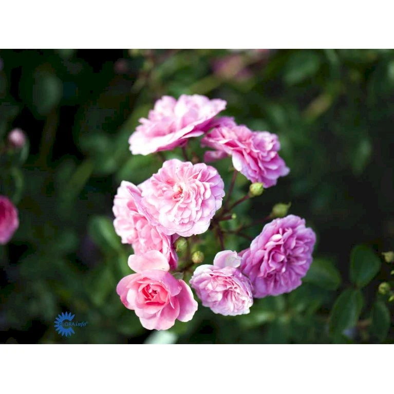 Velforgrenet, busket og udbredt vækstform, roserne sidder typisk i klaser på 7 – 20 blomster, på kraftige skud, betydeligt flere.