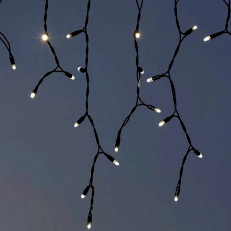 Iskrystal giver et varmt lysskær, og du kan hænge lyskæden i vinduer, gusgavle, altaner, carporte, hegn og træer.