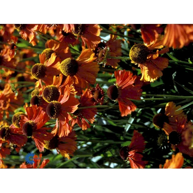 Juli-september. Dæmpede gyldne, gule, orange og rustfarvede nuancer i blomsterne, mørk midterknap.