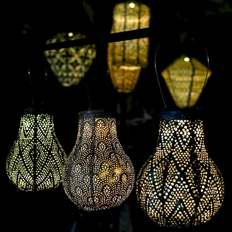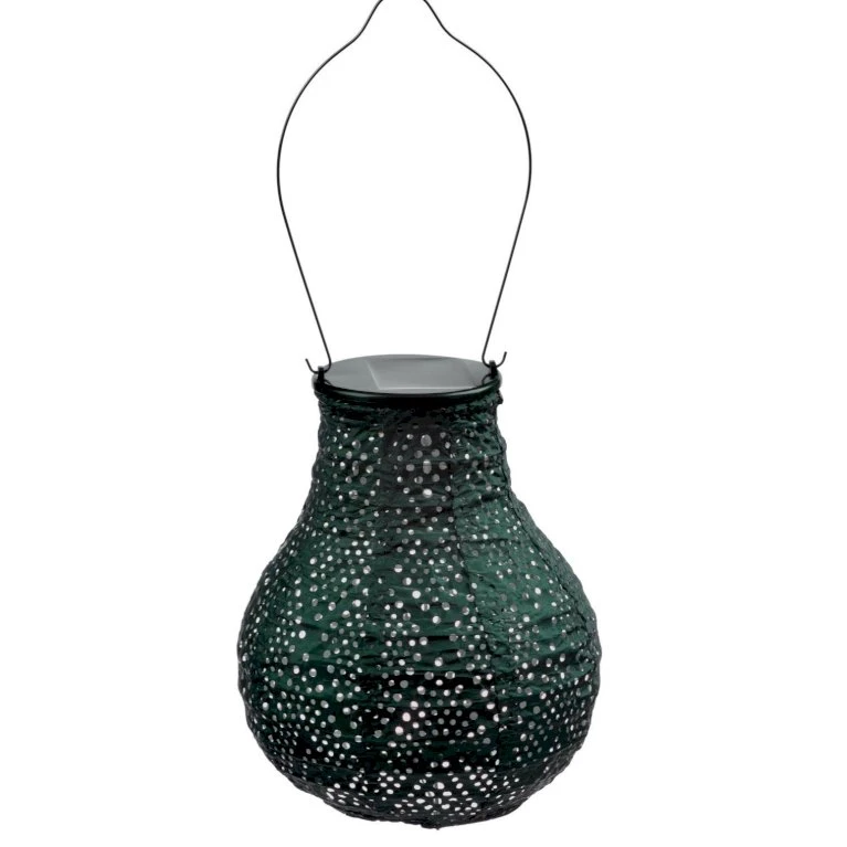 Lumiz solcelle lanterne bulb 16 cm i grøn med mønsteret ’Ikat’, kan smukt kombineres med andet belysning i din have eller på din terrasse.