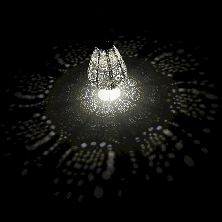 Solcellelampens varme LED lys giver en beroligende belysning, der kan nydes ved det skønne mønster som det spredes i.