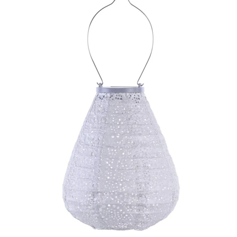 Lumiz solcelle lanterne tulip 20 cm i sølvfarve med mønsteret ’Paisley’, kan give et skønt og royalt look til din have eller terrasse.