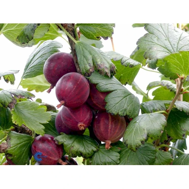 Stikkelsbærerne modner i juli, hvorefter de purpurrøde bær kan plukkes løbende indtil endt sæson.
